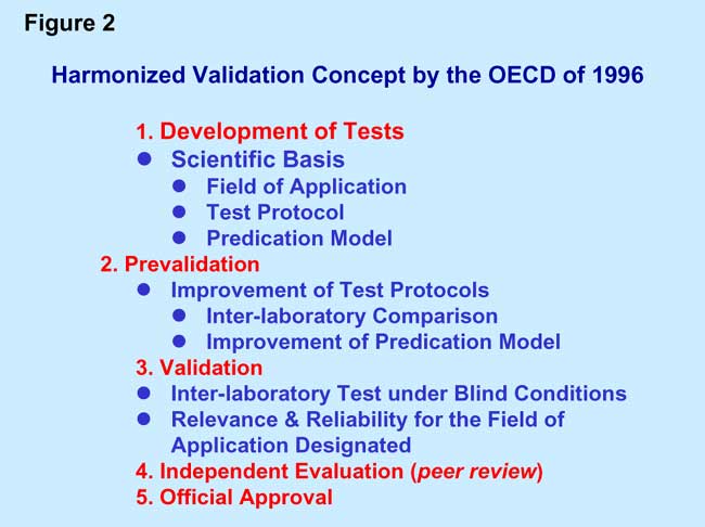 Experimental validation of toxicological test methods: the essential elements of the procedure for the development and experimental validation of toxicological methods, harmonized by the OECD in 1996, which apply in the same way to animal experiments and animal experiment-free alternative methods (OECD 1996) are described.