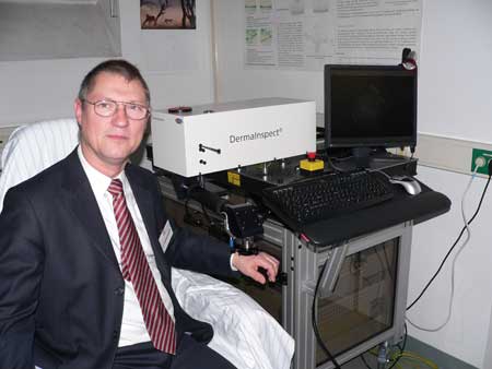 DermoTopics: Welche Zukunftsperspektiven sehen Sie für die innovativen Messverfahren in der Kosmetologie? Professor Lademann: Man muss davon ausgehen, dass das Streben nach der „ewigen Jugend“ noch zunehmen wird, und damit auch die Bereitschaft der Konsumenten, Kosmetika mit Anti-Aging-Eigenschaften anzuwenden. Deshalb ist es wichtig, gesicherte Methoden zur Charakterisierung dieser Produkte zur Verfügung zu haben. DermoTopics: Sehen Sie für die Verfahren auch in der Dermatologie positive Zukunftsperspektiven? Professor Lademann: In Klinik und Praxis möchte man die Diagnostik und Therapiekontrolle optimieren – auch unter dem Gesichtspunkt des Kostendrucks, den man heute hat. Hier bringen standardisierte In-vivo-Messmethoden den Vorteil der schnellen und relativ einfachen Ergebnisgewinnung mit sich. Die derzeit noch hohen Anschaffungskosten mancher Geräte werden sich mit zunehmender Durchsetzung der Verfahren auf einem niedrigeren Niveau einpendeln.
