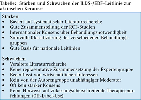 Unter dem Titel „Evidence- and consensus-based (S3) guidelines for the treatment of actinic keratosis“ gaben die „International League of Dermatological Societies“ (ILDS) und das „European Dermatology Forum“ (EDF) im Juli 2015 eine neue internationale Leitlinie zur Therapie der aktinischen Keratose heraus [1]. Sie wurde von der GD Task Force „Licht.Hautkrebs.Prävention“, einer Expertengruppe der Gesellschaft für Dermopharmazie, die sich seit Jahren auf dem Gebiet der Prävention und Therapie von hellem Hautkrebs engagiert, einer kritischen Bewertung unterzogen. Dabei kam die Task Force zu dem Schluss, dass die Leitlinie zwar einige Stärken, aber auch erhebliche Schwächen aufweist und dem Anspruch an eine S3-Leitlinie nicht gerecht wird. Die Task Force empfiehlt deshalb, die Leitlinie nicht unkritisch auf bestehende nationale Leitlinien zu übertragen, sondern sie lediglich als Basis für neue nationale Leitleitlinienvorhaben heranzuziehen.